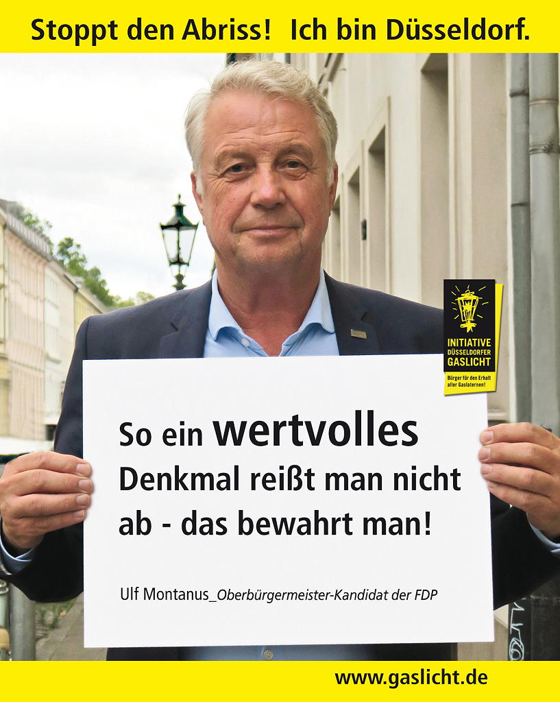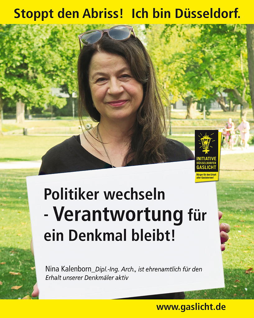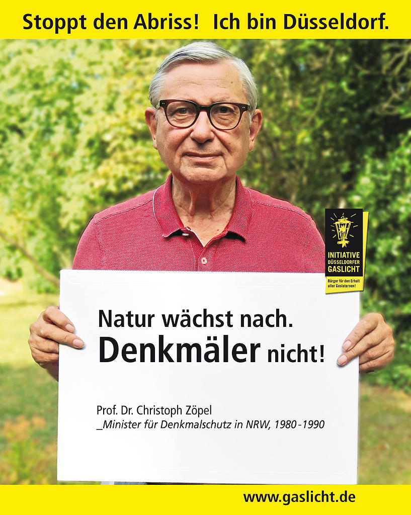 „Ich weise darauf hin, dass mit der Erlaubniserteilung über den weiteren Umgang mit dem Denkmal „Düsseldorfer Gasbeleuchtung" nicht entschieden worden ist.