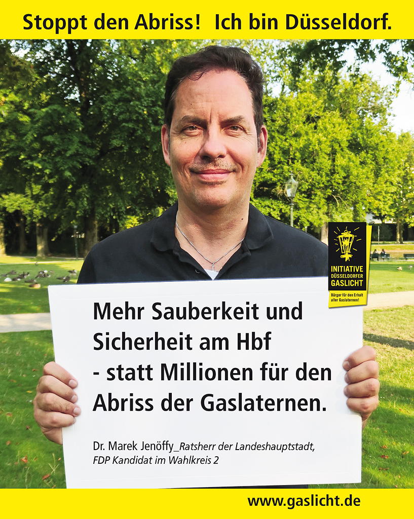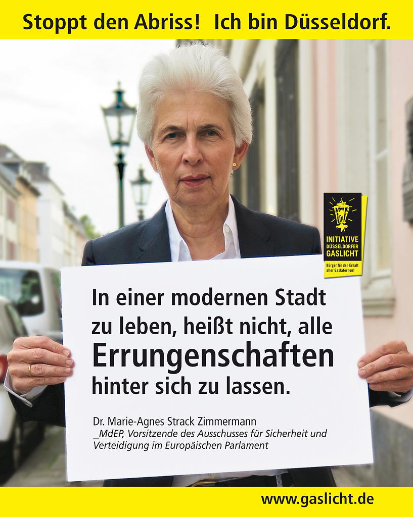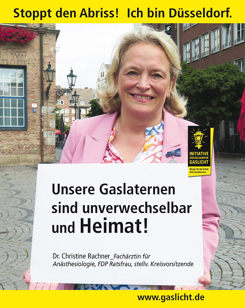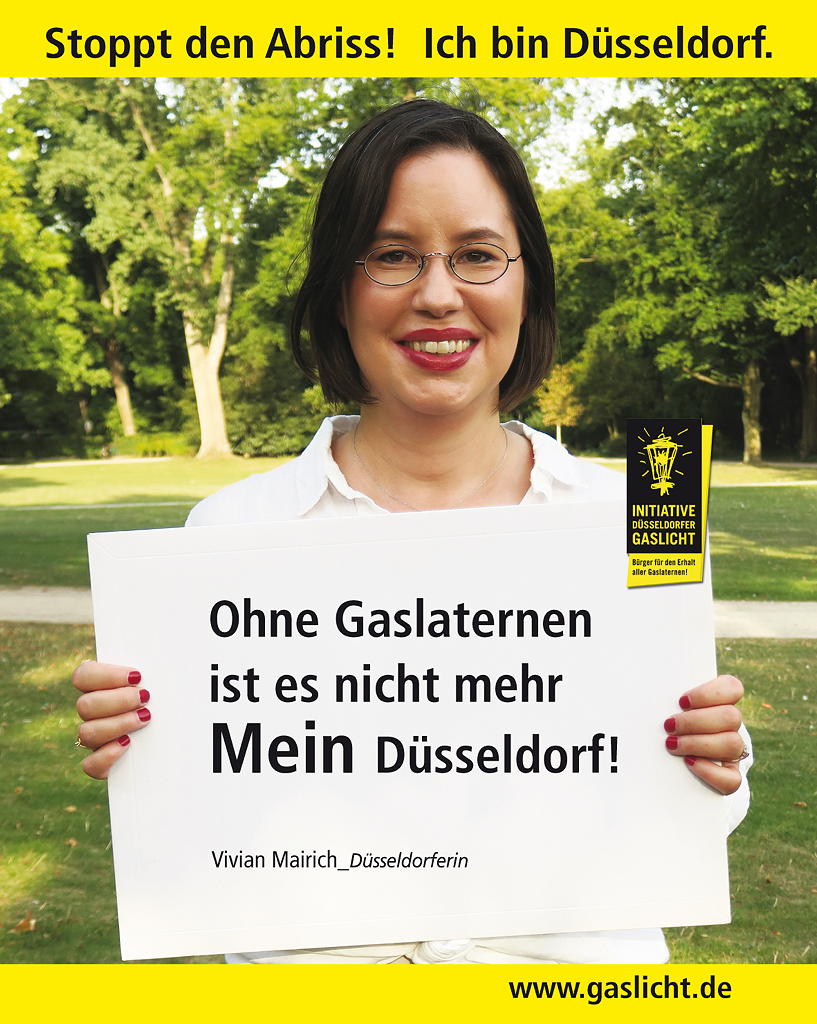 Düsseldorf ist bald die einzige Stadt weltweit, in der es ein funktionierendes Gaslaternennetz gibt. Keine andere Stadt wird auch nur annähernd so markant vom Schein der Gaslichts geprägt wie unsere.Wir haben gute Argumente:
