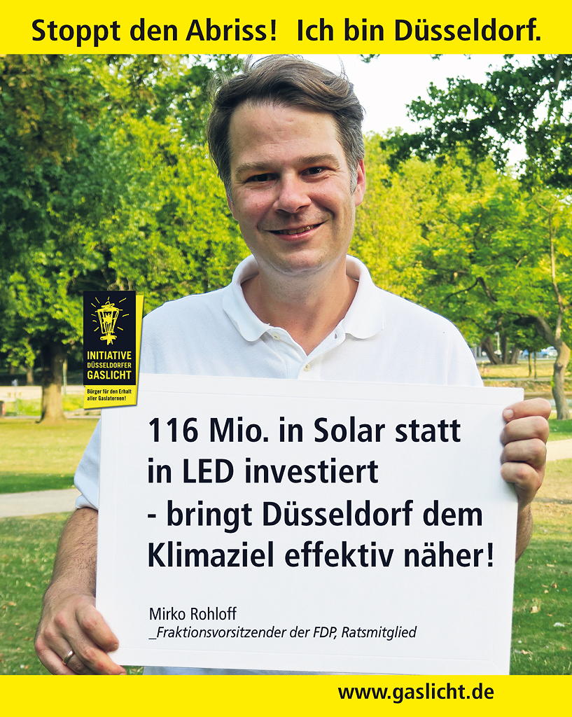 Wem also an den restlichen 9.000 Gaslaternen etwas liegt, sollte Kommunalpolitiker darauf ansprechen, dass die Verwaltung drauf und dran ist, durch Untätigkeit Fakten zu schaffen. Über unsere gewählten Vertreter können wir mit Nachdruck darauf hinwirken, dass die Hinweise der Ministerin beachtet werden. Der aktuelle Chef der Stadtverwaltung hat nämlich kein Interesse daran.